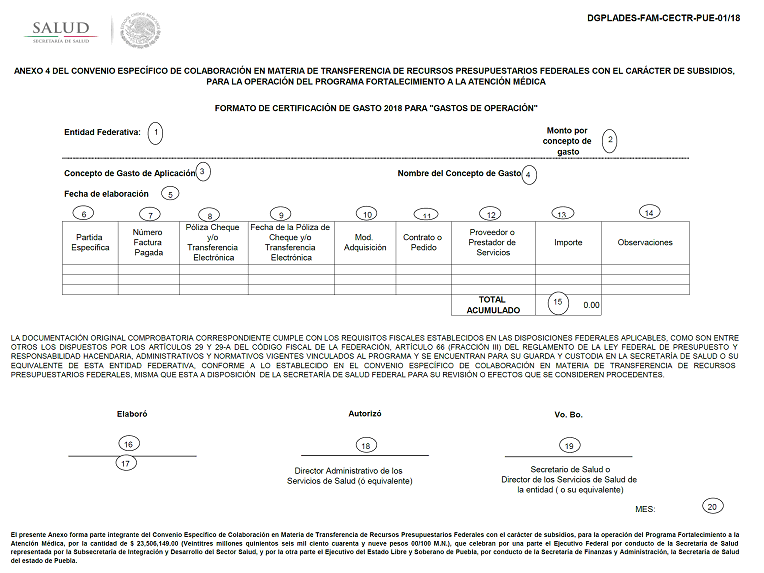 | 26102 | COMBUSTIBLES, LUBRICANTES Y ADITIVOS PARA VEHICULOS TERRESTRES, AEREOS, MARITIMOS, LACUSTRES Y FLUVIALES DESTINADOS A SERVICIOS PUBLICOS Y LA OPERACION DE PROGRAMAS PUBLICOS | Asignaciones destinadas a la adquisición de gasolina para vehículos federales (unidades médicas móviles) del Programa FAM. |