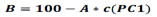 Como se comentó, una vez que se aplica la transformación doble arcoseno que estabiliza la magnitud de la precisión que se tiene para cada punto de la escala, se procede a aplicar la transformación lineal que ubica el punto de corte en 100 unidades.