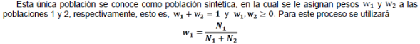 Cualquiera de los métodos de equiparación de puntajes que se construya involucra dos poblaciones diferentes. Sin embargo, una función de equiparación de puntajes se define sobre una población única. Por lo tanto, las poblaciones 1 y 2 que corresponden a las poblaciones donde se aplicó la forma nueva y antigua, deben ser combinadas para obtener una población única a fin de definir una relación de equiparación.