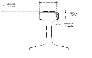 | Desgaste vertical máximo en el hongo del riel de 90-100 lb/yd | mm | - | 13 | 13 | 13 | 13 | 13 |