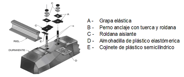 | Clase de vía | Vía en tangente y en curvas < 2 grados | Cambios y vía en curvas mayores de 2 grados |
