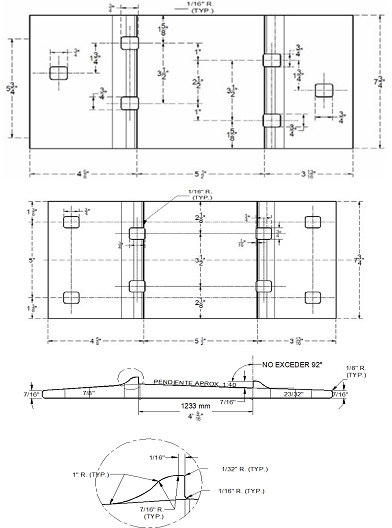 | Riel aplanado | Profundidad < 10 mm (3/8") y largo < 203 mm (8") | --------- | --------- | --------- | H |