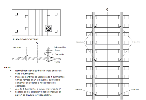 | Vía de excepción y vías clase 1, 2 y 3 | Vía principal y en laderos | Por lo menos una vez a la semana, con un intervalo mínimo de 3 días entre inspecciones, si la vía se usa menos de una vez a la semana o dos veces al mes con un intervalo mínimo del día entre inspecciones, si en la vía se trasladan trenes de pasajeros o mueven más de 10 millones de toneladas brutas durante el tráfico del año anterior. Cuando se requiere utilizar la vía de excepción, ésta deberá ser inspeccionada previamente por personal del departamento de infraestructura. |