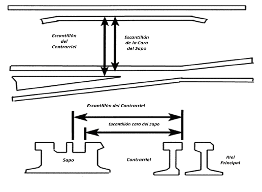 | Escantillón de contrarriel al cara interna ala del sapo no debe ser mayor que | mm | - | 1,353 | 1,349 | 1,349 | 1,349 | 1,346 |