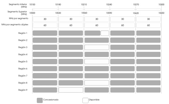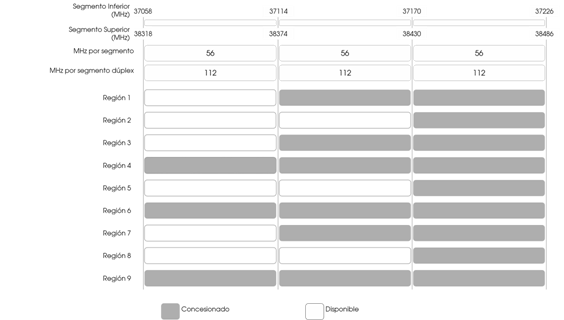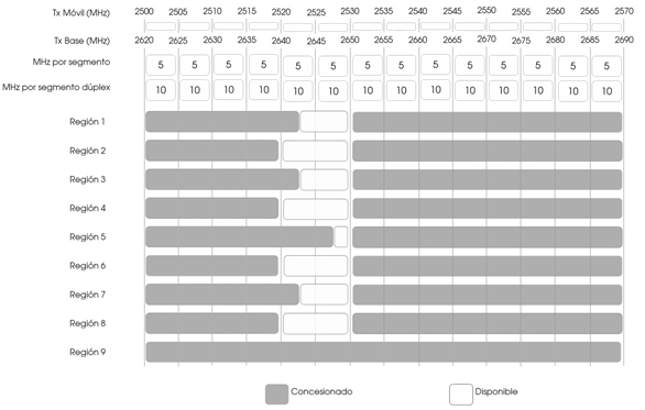| 2500 - 2530/2620 - 2650 MHz | Comercial |