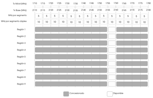 | 1755 - 1760/2155 - 2160 MHz | Comercial |