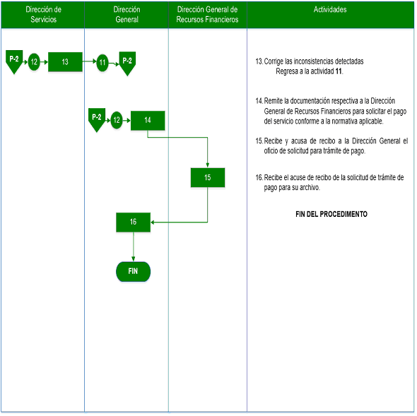 | Dirección de Servicios | 31. Elabora el oficio de solicitud para trámite de pago y requisita el formato correspondiente. | Oficio y formato de solicitud de pago |