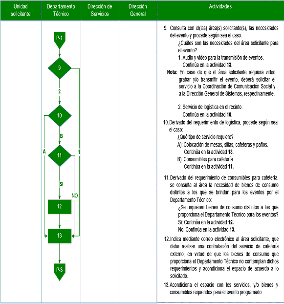 | Unidad solicitante | 16. Elabora, imprime y entrega en el Departamento de Servicios la(s) guía(s) de embarque con la correspondencia y/o paquetería a enviar. | Guía de embarque |