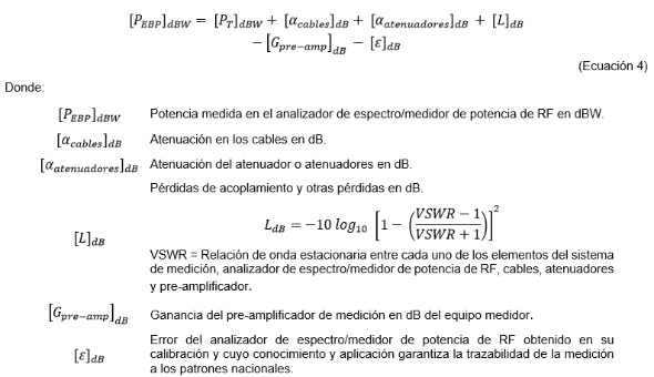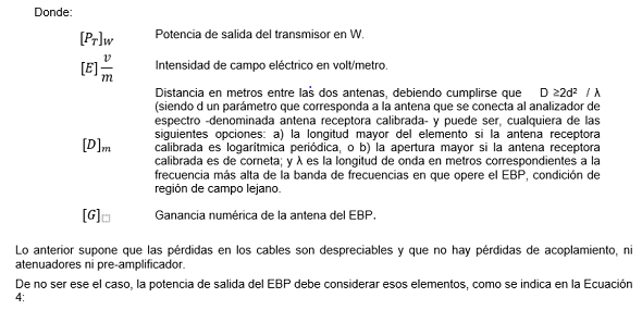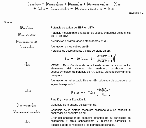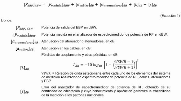 | 4.2.1 | Potencia de salida del transmisor La Potencia media de los equipos transmisores debe ser como máximo lo establecido en la Tabla 3. En condiciones normales de operación, la potencia media (conducida) de los equipos transmisores, para una modulación de ángulo de envolvente constante (analógica), y de ángulo de envolvente no constante (digital) (es la potencia media, medida en las terminales del equipo durante un ciclo de radiofrecuencia) no debe presentar variaciones mayores de ±1.5 dB. En condiciones extremas de operación, la potencia media (conducida) de los equipos transmisores debe permanecer entre +2.0 dB y -3.0 dB. La potencia radiada efectiva de los equipos transmisores para una modulación de ángulo de envolvente constante (analógica), es la potencia radiada en la dirección de la intensidad de campo máxima en ausencia de modulación. La potencia radiada efectiva de los equipos transmisores para una modulación de envolvente no constante (digital), es el valor de salida PEP para cualquier condición de modulación radiada en la dirección de la intensidad de campo máxima. La potencia radiada efectiva debe medirse únicamente en condiciones normales de prueba y no debe presentar variaciones mayores de ±1.5 dB. Lo anterior se verifica mediante el método de prueba 5.5. | |