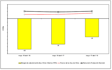 169. Por lo anterior, la Secretaría consideró de manera inicial que la disminución que mostraron las ventas internas de la rama de producción nacional en el periodo investigado, se explica por el nivel de precios al que concurrieron al mercado mexicano las importaciones investigadas durante el periodo analizado, debido a que éstas tuvieron precios menores a los del producto nacional similar, pues conforme a los resultados descritos en el punto 157 de la presente Resolución, registraron significativos márgenes de subvaloración de 44% en el periodo mayo de 2015-abril de 2016, 36% en el siguiente lapso comparable y 26% en el periodo investigado.
