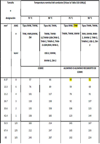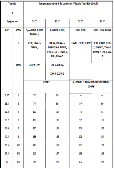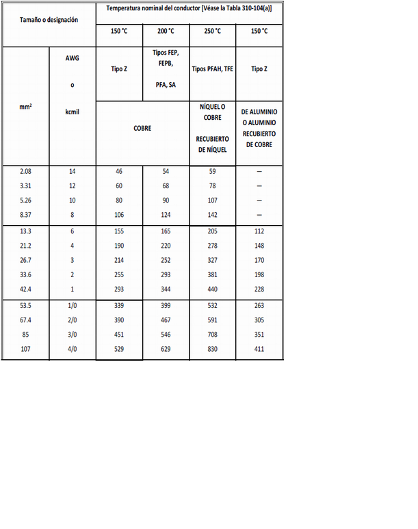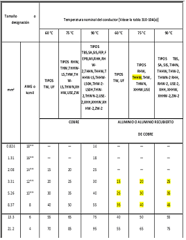 Soporte o fundamento: Homologación de NEC 2017 (National Electric Code) con norma oficial Mexicana NOM-001-SEDE-2018 para conductores tipo THHW, THW, THW-2, THWN, THWN-2 y THHN con conductor de aluminio recubierto con cobre (Copper-Clad Aluminum) para tamaños o calibres 12, 10 y 8 AWG. | |||||||||||||||||||||||||||||||||||||||||||||||||||||||||||||||||||||||||||||||||||||||||||||||||||||||||||||||||||||||||||||||||||||||||||||||||||||||