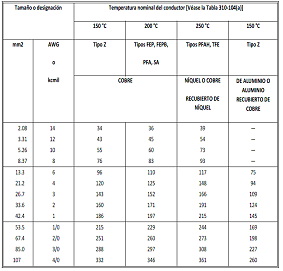 Soporte o fundamento: Homologación de NEC 2017 (National Electric Code) con norma oficial Mexicana NOM-001-SEDE-2018 para conductores tipo THHW, THW, THW-2, THWN, THWN-2 y THHN con conductor de aluminio recubierto con cobre (Copper-Clad Aluminum) para tamaños o calibres 12, 10 y 8 AWG. | ||||||||||||||||||||||||||||||||||||||