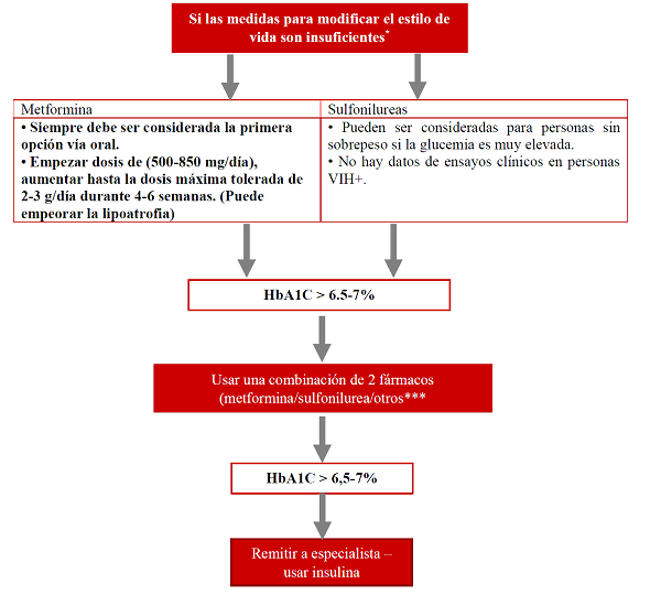 | Después de iniciar TAR | A los 2 meses después del inicio de TAR; posteriormente, a los 6 y 10 meses (CIII) del inicio de TAR, y después cada 4 a 6 meses durante los primeros dos años (AIII) | 2 a 6 meses después del inicio de TAR (AIII) y después cada 4 a 6 meses en los primeros dos años (BIII) |