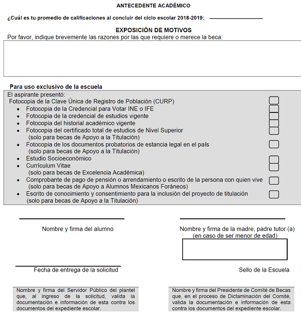 · Formato de solicitud de beca avalado por el espacio académico al que busca insertarse.