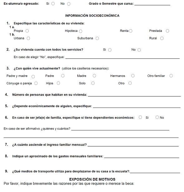 · Hoja de reinscripción al semestre en el que está solicitando la beca.