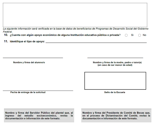 10. Estoy enterado/a que debo informar al Instituto Nacional de Antropología e Historia, cualquier cambio de domicilio o datos proporcionados en mi solicitud de beca.
