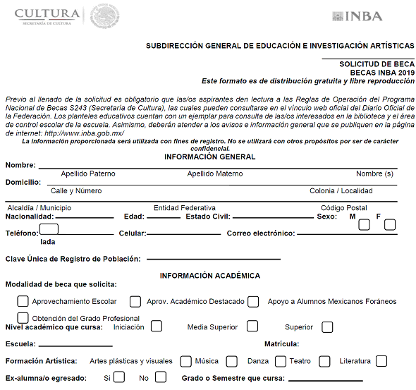 2 Beca de apoyo a alumnos mexicanos foráneos (INBA).