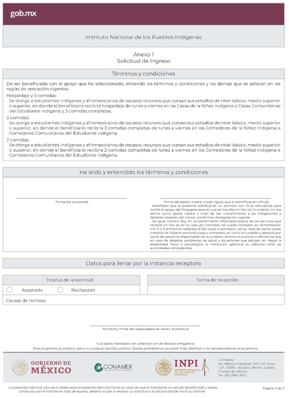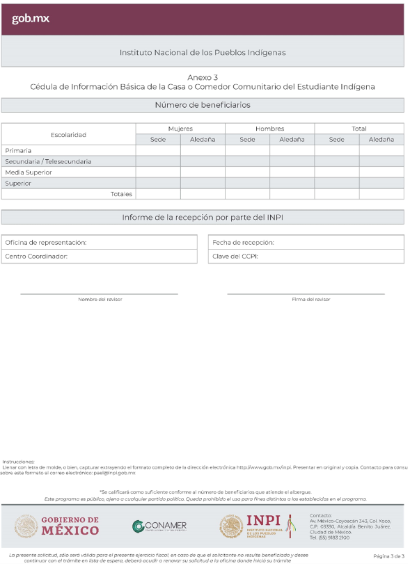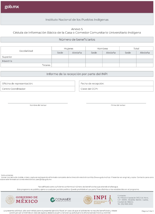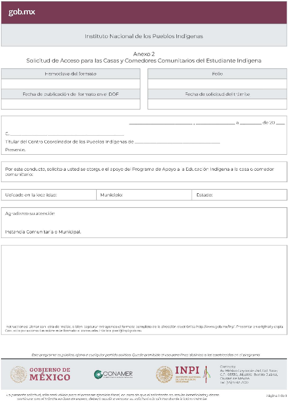 Al margen un logotipo, que dice: Instituto Nacional de los Pueblos Indígenas.