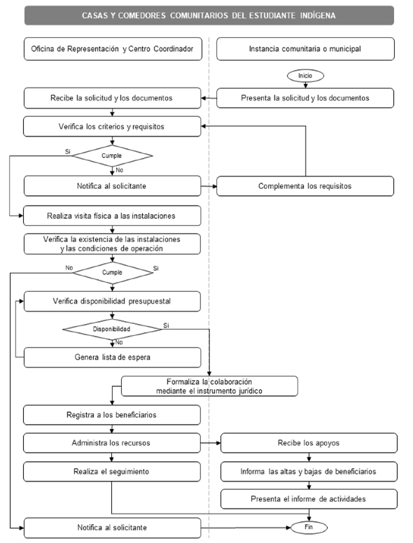Las Casas y Comedores Comunitarios del Estudiante Indígena son administrados y operados por instancias comunitarias y, en algunos casos debidamente justificados, por instancias estatales y municipales. La verificación y el seguimiento de la entrega de los apoyos serán realizados por el INPI.