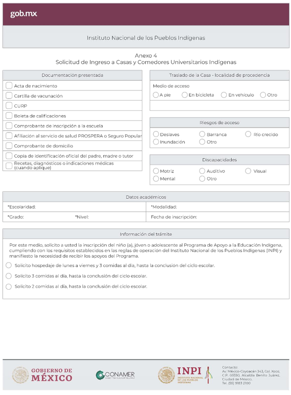 El Gobierno de México, a través del INPI, instrumenta el PAEI, para dar respuesta a las demandas de la población indígena y afromexicana relacionadas con el acceso y la permanencia en los diferentes niveles educativos, así como para fortalecer la interculturalidad y establecer estrategias paralelas para disminuir los riesgos a la salud y mejorar los estados nutricionales de niñas, niños, adolescentes y jóvenes indígenas y afromexicanos. Asimismo, el Programa otorga becas a estudiantes indígenas y afromexicanos que cursan educación superior y maestría a efecto de consolidar su proceso formativo e impulsarlos a la conclusión de sus estudios profesionales.