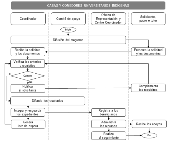 Las modalidades de atención de Casa de la Niñez Indígena, Comedor de la Niñez Indígena, Casa Universitaria Indígena y Comedor Universitario Indígena son administradas por el INPI, a través de las Oficinas de Representación y los Centros Coordinadores, en colaboración con la SEP y operan bajo la responsabilidad directa del Coordinador de la casa y ecónomas, designados por la SEP, y Coordinador de la casa y ecónomas comunitarios designados por la Asamblea de Padres de Familia y son vigiladas por los Comités de Contraloría Social designados por la Asamblea Comunitaria.