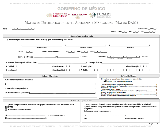 | 2. Persona artesana | 2.1. Presentar su producto, el cual estará sujeto a un análisis conforme a la Matriz de Diferenciación entre Artesanía y Manualidad (Matriz DAM) Anexo 2, aplicada por el FONART o por quien tenga convenio de coordinación y colaboración firmado y vigente. |