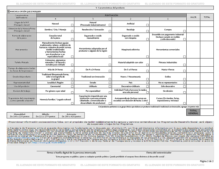 | 2. Ser un taller integrado al menos por seis artesanas y/o artesanos que habiten en zonas con mayor grado de marginación, pobreza o zonas con altos índices de violencia, orientada por los criterios de resultados que defina el Consejo Nacional de Evaluación de la Política de Desarrollo Social. | 2.1 Cada persona integrante del taller deberá proporcionar información socioeconómica para la integración del Padrón de Beneficiarios. |