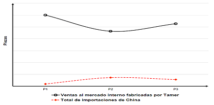 103. Asimismo, con base en las cifras de mercancía fabricada por Tamer vendida a sus principales clientes en el periodo analizado y las cifras del listado de operaciones de importación obtenidas de SIC-M, tal como se señaló en los puntos 82 y 92 de la presente Resolución, los clientes comunes no solo incrementaron la adquisición de importaciones investigadas en el periodo analizado sino que, a su vez, disminuyeron sus compras nacionales, configurando la posibilidad de que haya existido un desplazamiento de estas últimas, debido al diferencial de precios observado entre ambas mercancías.