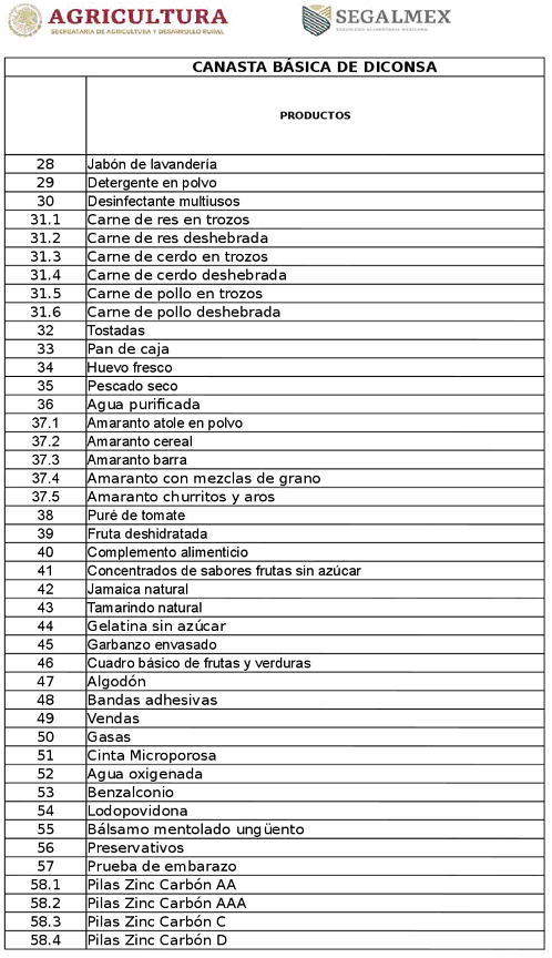 CANASTA BÁSICA DE DICONCSA A PARTIR DEL 1 DE OCTUBRE DE 2019