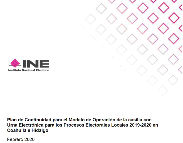 Plan de Continuidad Plan de Continuidad para el modelo de operación de la casilla con urna electrónica para los Procesos Electorales Locales de Coahuila e Hidalgo 2019-2020