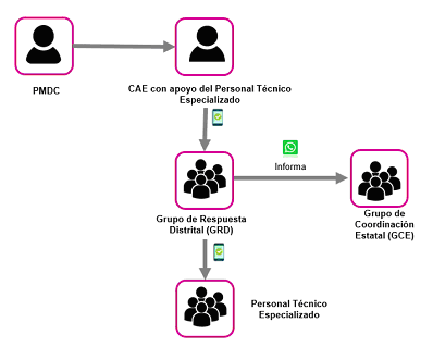 · Dentro del grupo confirmado por los CAE se deberá integrar al Vocal Ejecutivo Local para que sea notificado en caso de alguna contingencia.