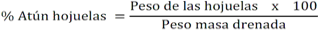 c) Expresar el peso del atún en hojuelas como porcentaje (%) de la masa drenada.