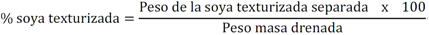 El cálculo para determinar el porcentaje de participación de soya texturizada en el producto se hará de la siguiente manera: