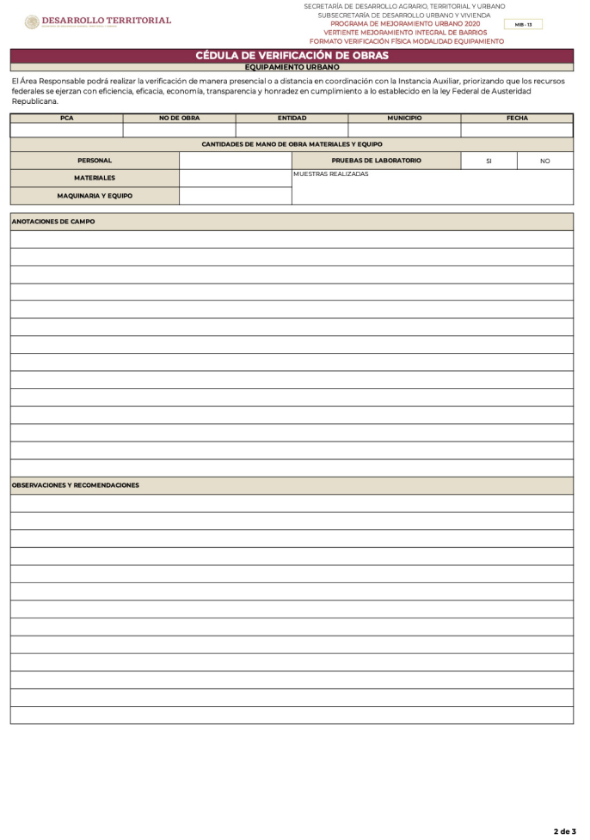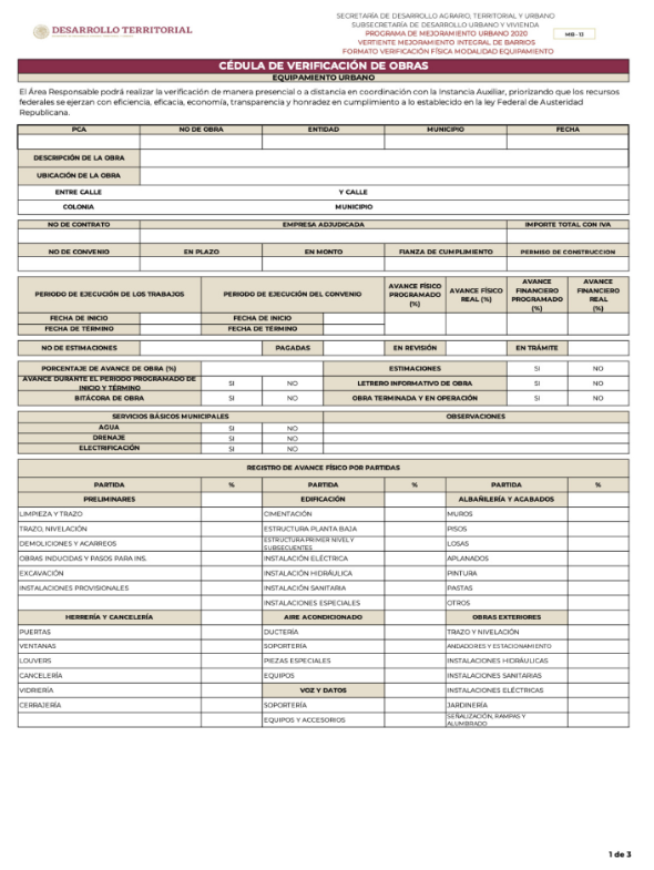ANEXO MIB-13 FORMATO DE VERIFICACIÓN DE OBRA (EQUIPAMIENTO)