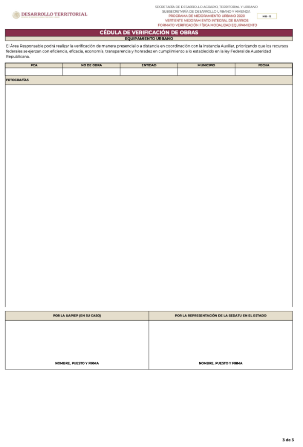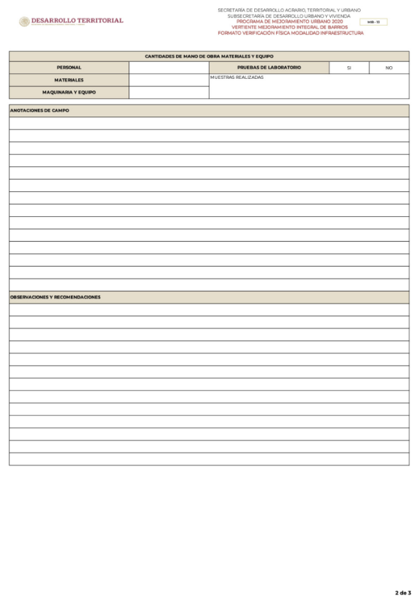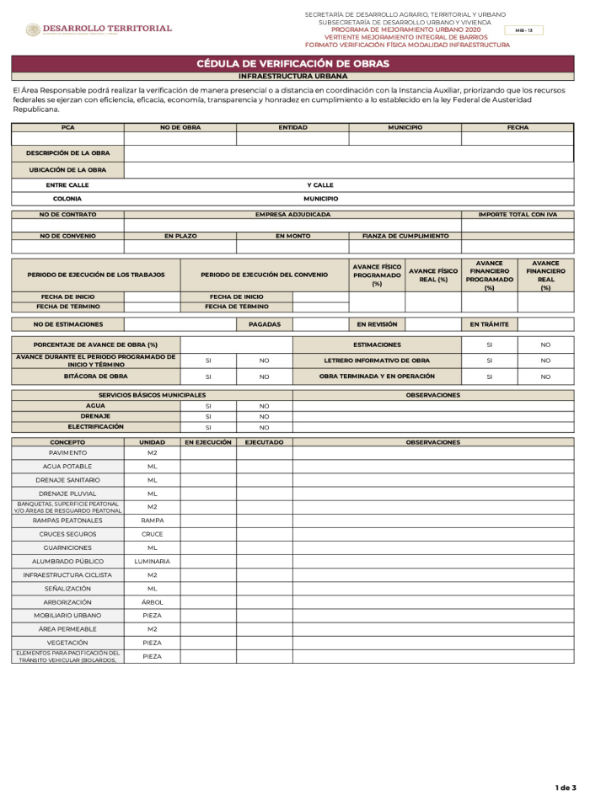 ANEXO MIB-13 FORMATO DE VERIFICACIÓN DE OBRA (INFRAESTRUCTURA URBANA)