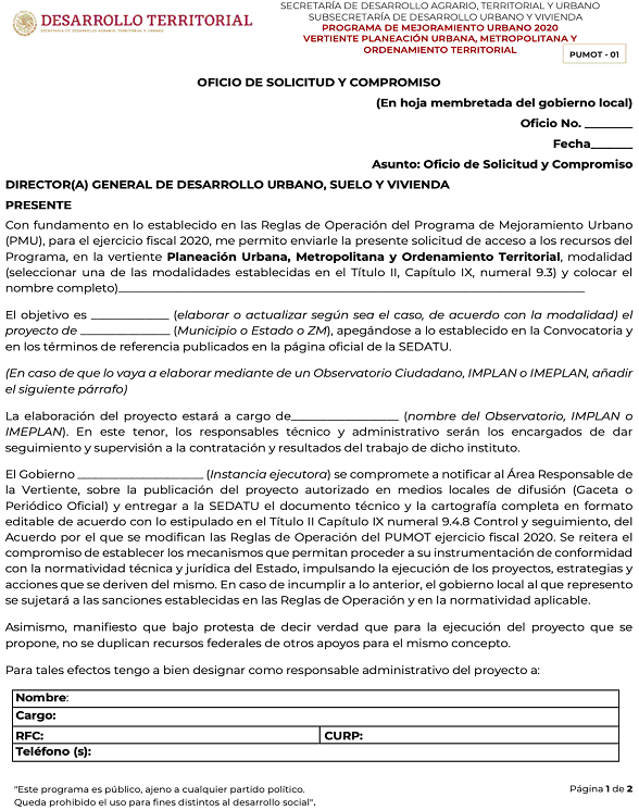 ANEXO PUMOT-01 OFICIO DE SOLICITUD Y COMPROMISO
