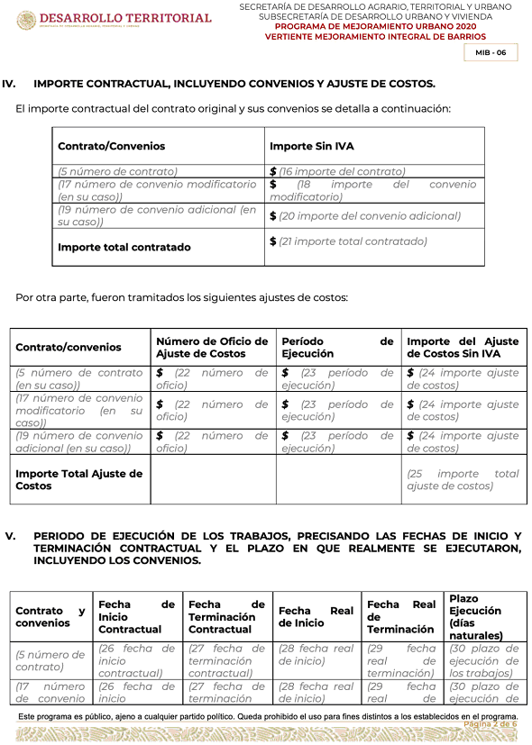 f) Llevar a cabo obras y acciones de mejoramiento urbano que permitan incrementar la actividad económica en ciudades mexicanas, como un mecanismo contracíclico en el contexto de la contingencia sanitaria ocasionada por el COVID-19.