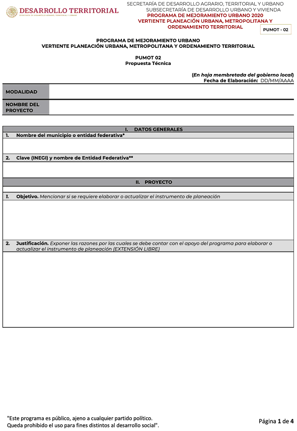 Nota 1/: Los anexos PUMOT-01 y PUMOT-02, pueden ser consultados en el micrositio del Programa: http://mimexicolate.gob.mx/.