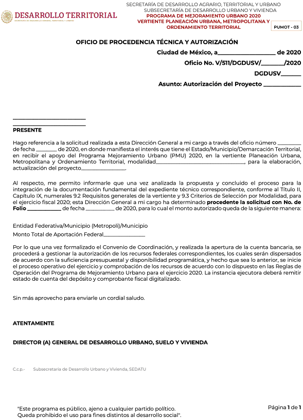 ANEXO PUMOT-03 OFICIO DE PROCEDENCIA TÉCNICA Y AUTORIZACIÓN