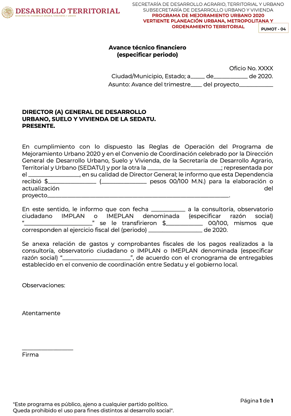 ANEXO PUMOT-04 ANEXO AVANCE TÉCNICO-FINANCIERO