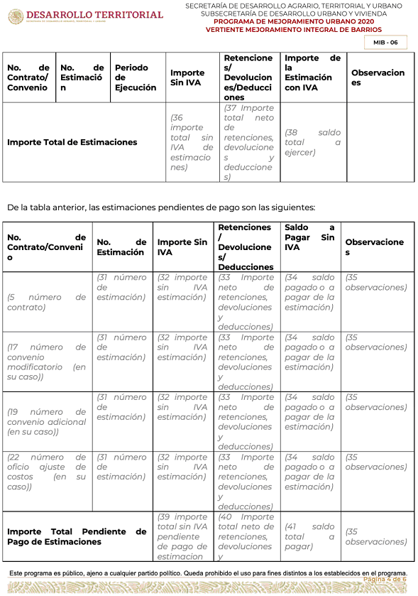 ANEXO MIB-12 CÉDULA DE REGISTRO DE BENEFICIARIOS DE LA VERTIENTE MEJORAMIENTO