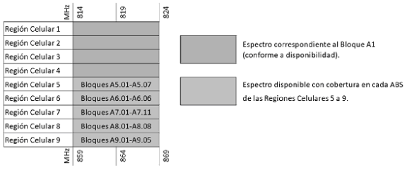 Tabla 2: Bloques disponibles en la Banda 800 MHz (Regiones Celulares 5 a 9).