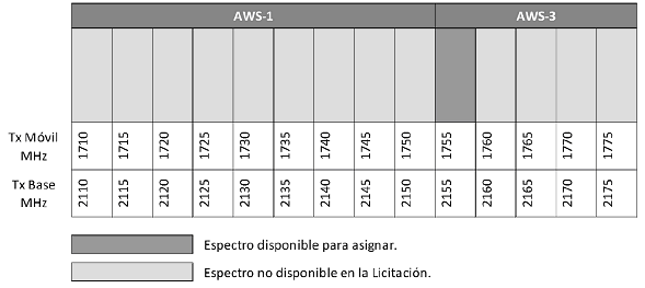 Figura 2: Banda AWS en México espectro disponible en la Licitación.
