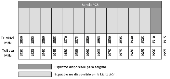 Figura 3: Banda PCS en México espectro disponible en la Licitación.