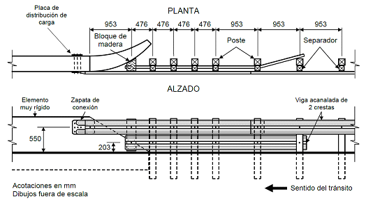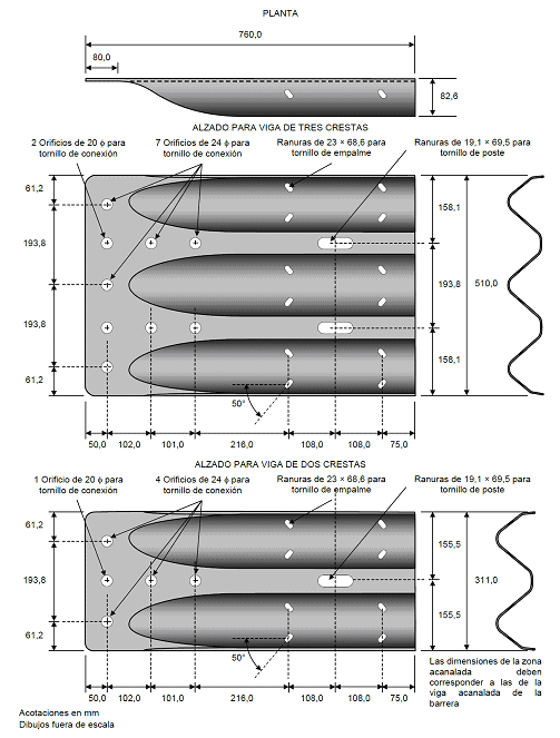 8.2.1. Para barreras de orilla de corona de acero con vigas acanaladas de dos o tres crestas (OD-4.1.1 y OD-4.1.2)