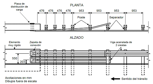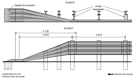 FIGURA 28.- Sección de amortiguamiento redireccionable- no traspasable (OD-4.4.1/RNT) en barrera de