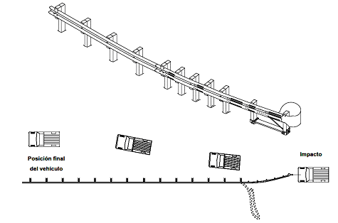 | [1] Según el Manual for Assessing Safety Hardware (MASH), American Association of State Highway and Transportation Officials, Estados Unidos de América, 2009 y 2016) [2] Para secciones tipo no redireccionales (NR) el ángulo de impacto es de 15 grados, de acuerdo con la prueba No. 43 del Manual for Assessing Safety Hardware (MASH), American Association of State Highway and Transportation Officials, Estados Unidos de América, 2009 y 2016. |