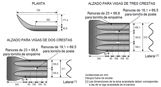 FIGURA 32.- Sección terminal aterrizada para vigas acanaladas de dos y de tres crestas (OD-4.4.2/A)