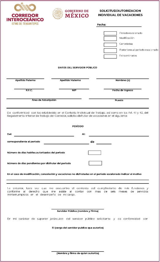 Anexo 3.- FORMATO SOLICITUD PARA LA AUTORIZACIÓN DE VACACIONES