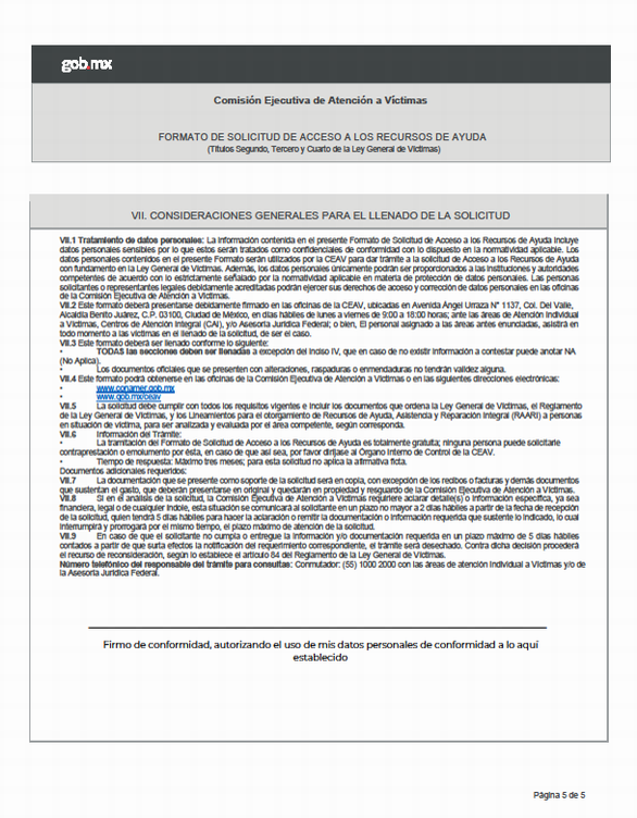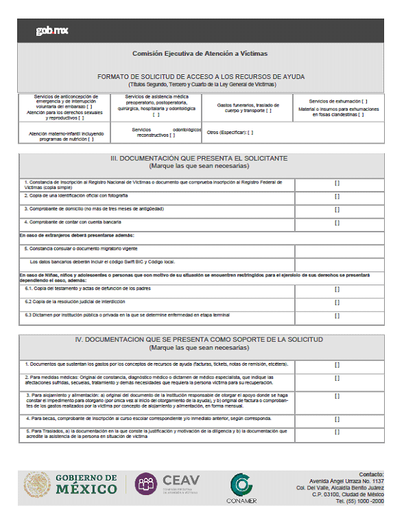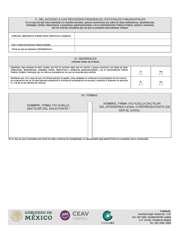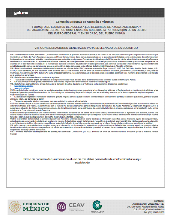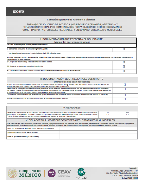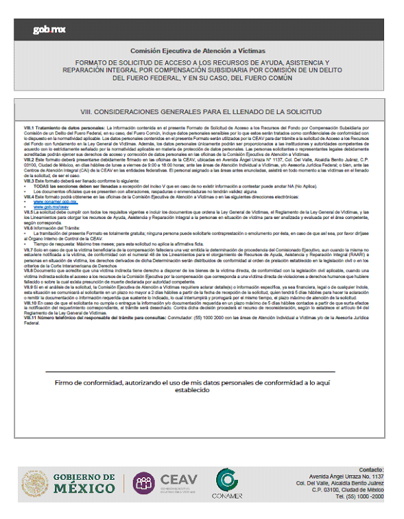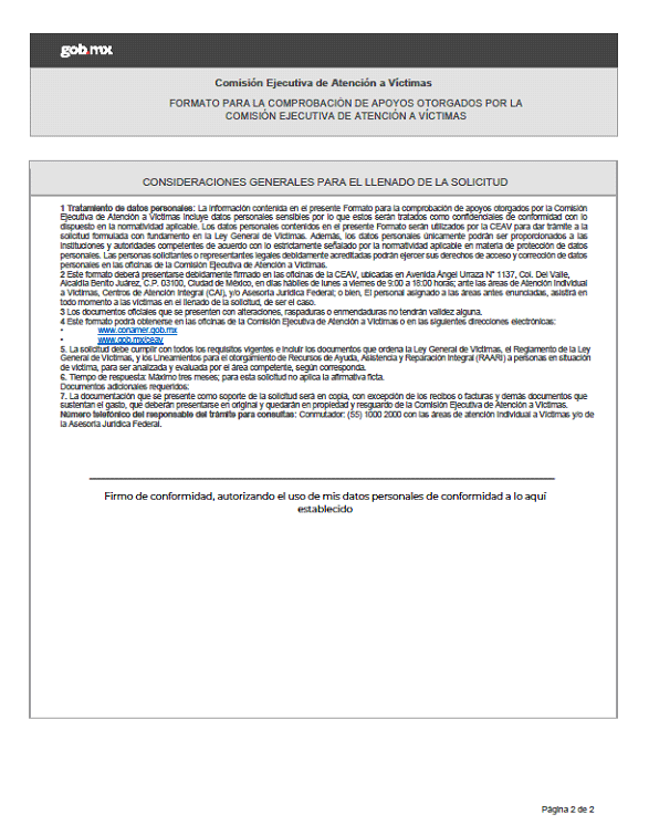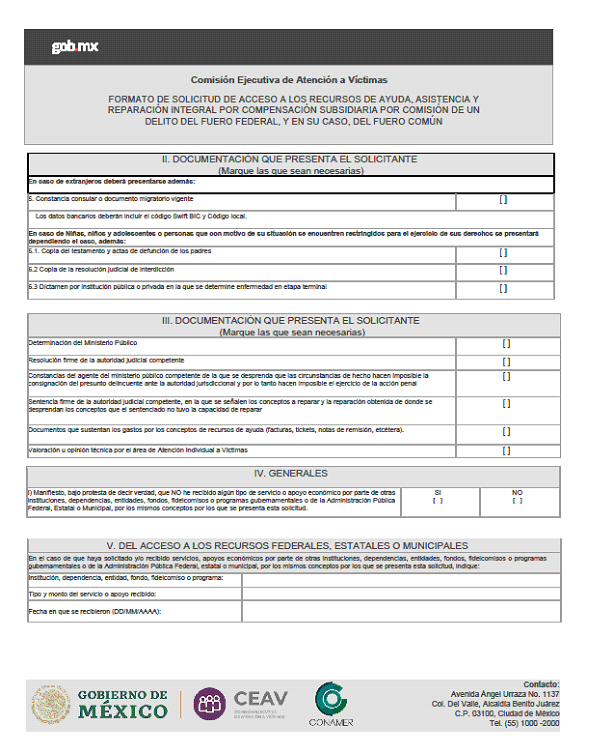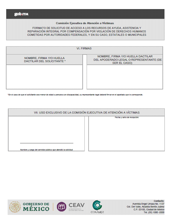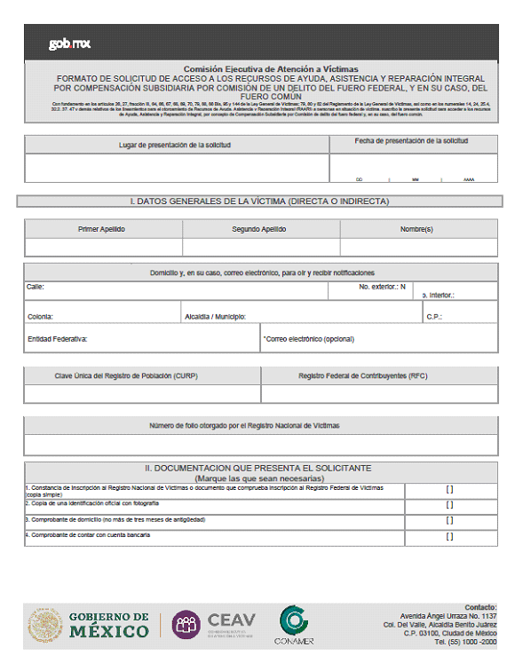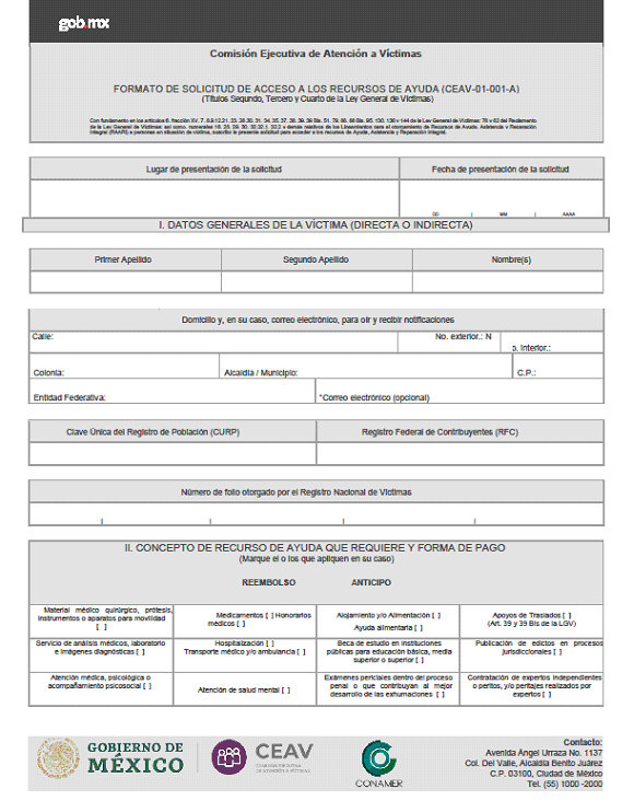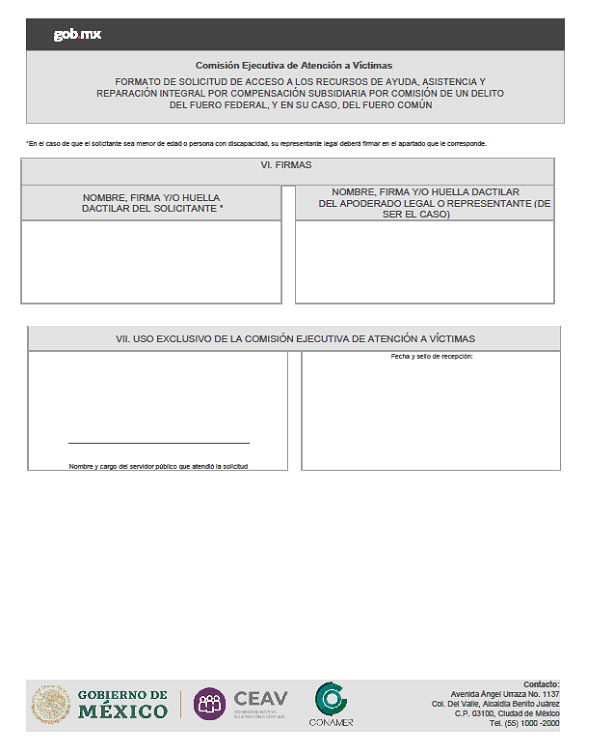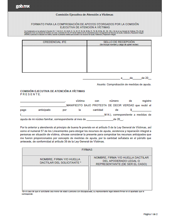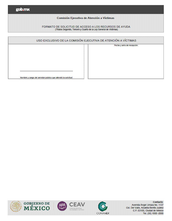 Al margen un sello con el Escudo Nacional, que dice: Estados Unidos Mexicanos.- GOBIERNO DE MÉXICO.- Comisión Ejecutiva de Atención a Víctimas.